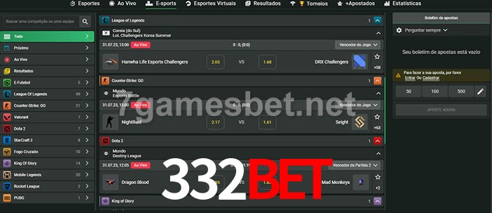 O 332bet oferece uma grande seleção de opções de apostas em e-sports com probabilidades competitivas